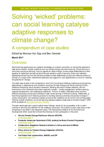 Solving ‘wicked’ problems: can social learning catalyse adaptive responses to climate change? A compendium of case studies