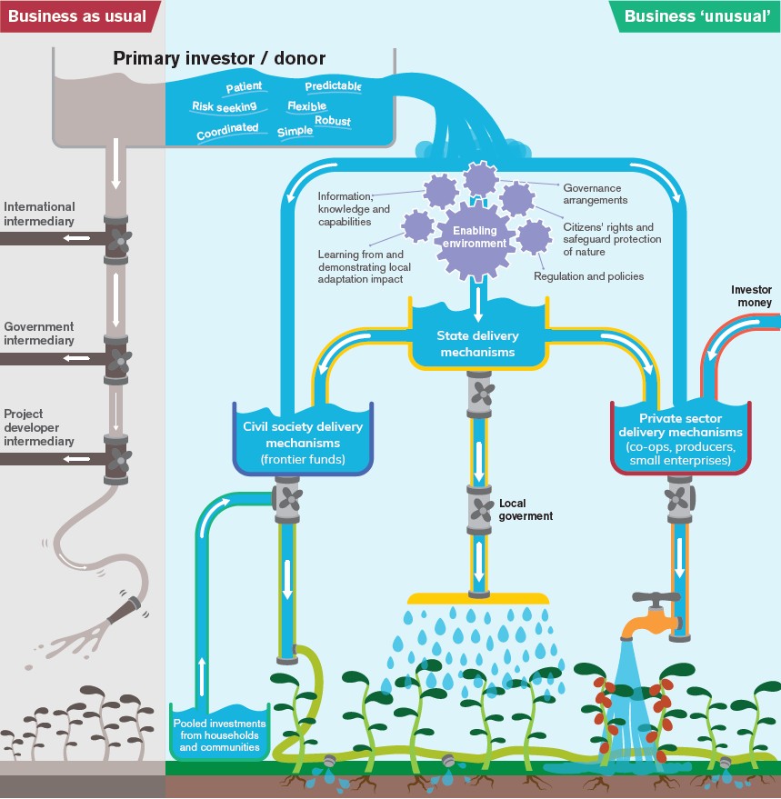 - Mechanisms that deliver: we have identified a set of approaches that enable state, private sector and civil society institutions to deliver – at scale – flexible climate finance that is in line with local communities’ priorities while also tackling fundamental governance challenges.