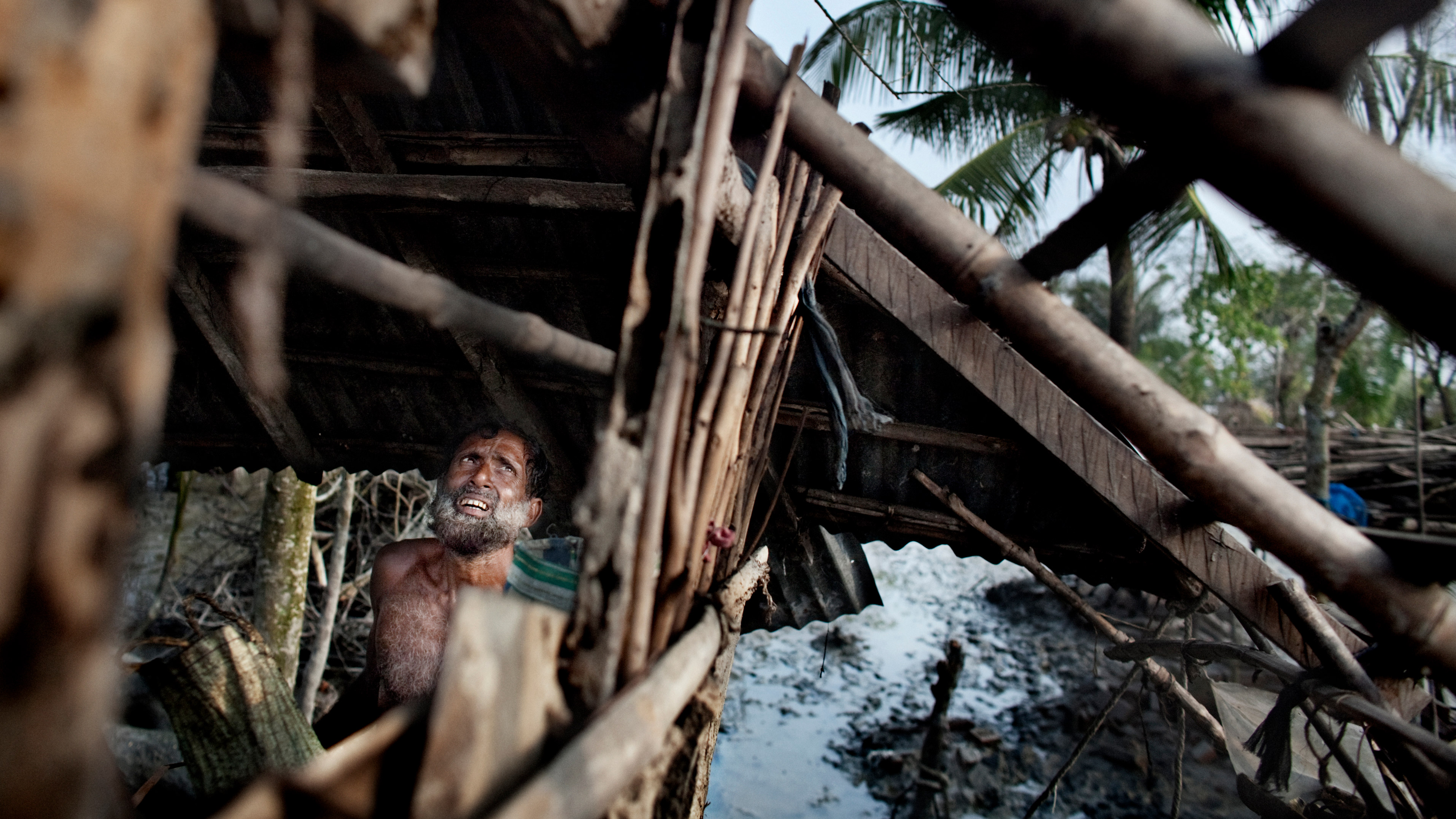 Padma Pakur island, Bangladesh: a man deconstructing his home to move it away from rising waters. "It is not possible to live here anymore," he says (Photo: Espen Rasmussen/PANOS)