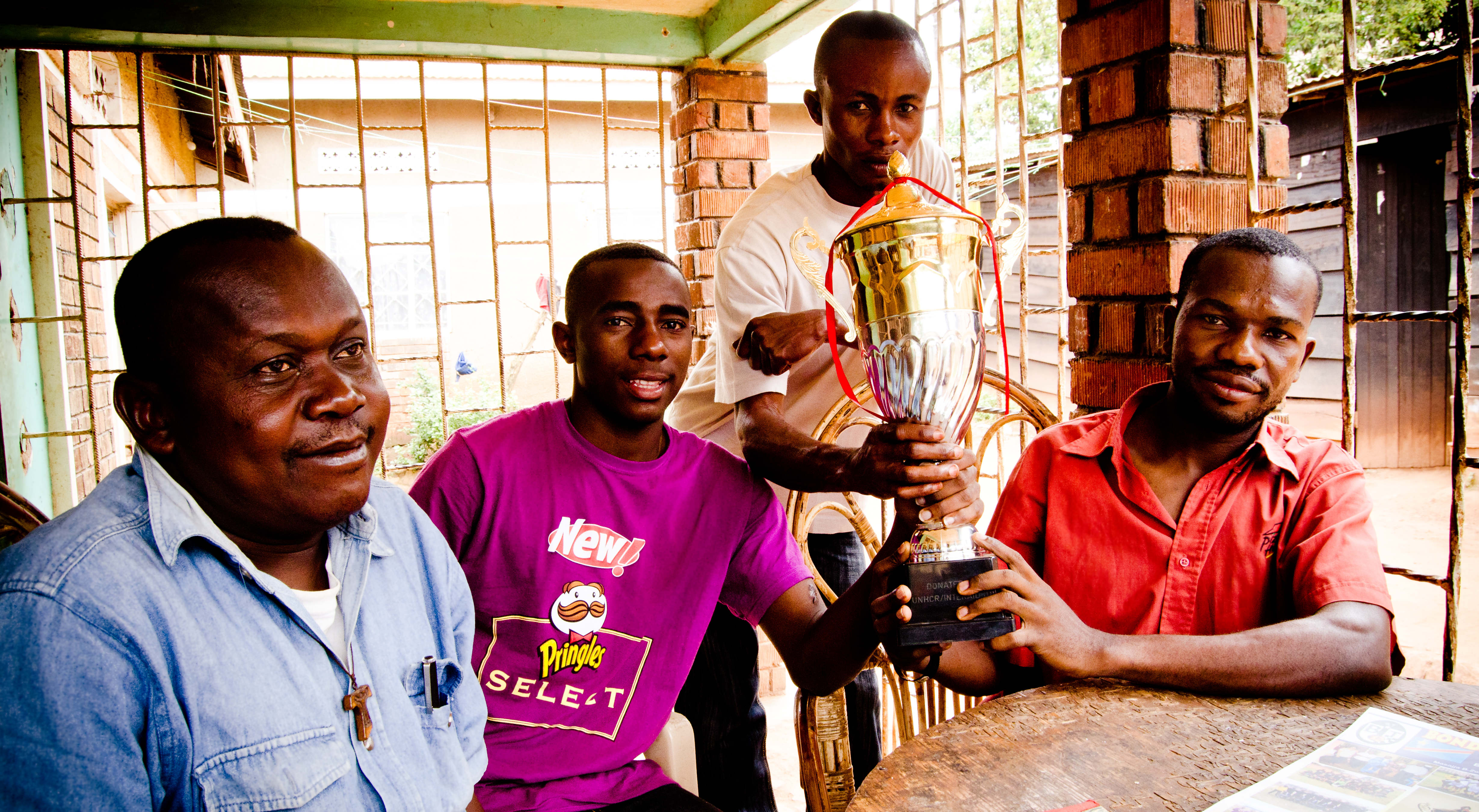 Congolese refugees proudly display the cup they won in a football tournament for youths from refugee communities in Kampala (Photo: Stephen Luke, Creative Commons via Flickr)