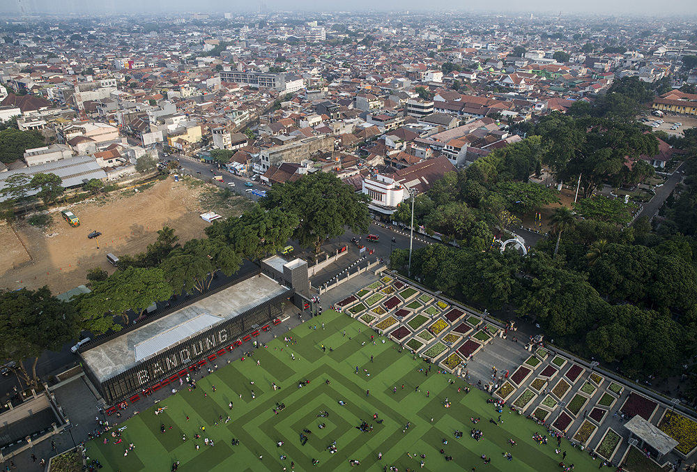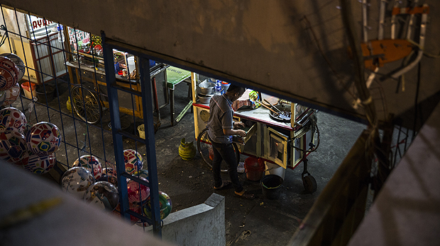 This car park area below the alun-alun of the Masjid Raya Mosque in Bandung is a 'green zone', where street vending is permitted by the Bandung authorities. But business is slow and the environment is poor (Photo: Kemal Jufri/Panos Pictures)