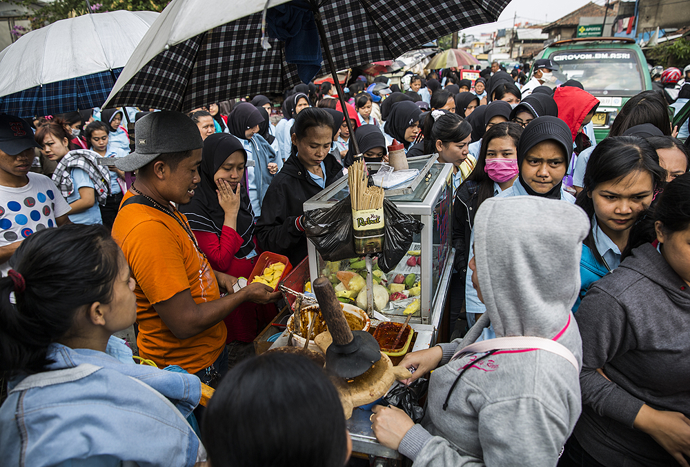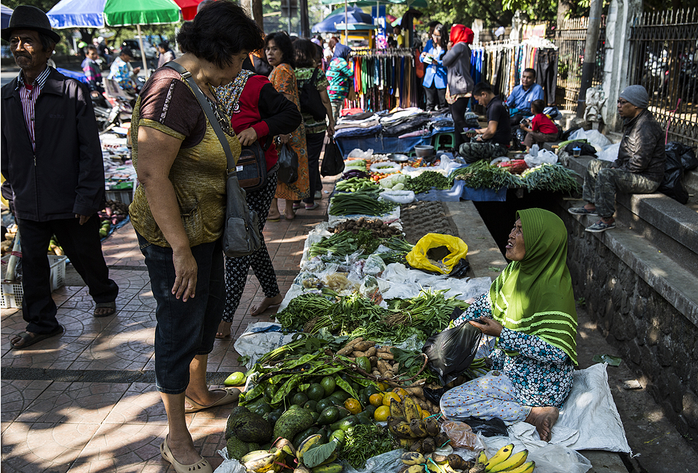 With 2.5 million inhabitants, Bandung in West Java is a major city. Informal street vendors are vital, providing both food and employment.