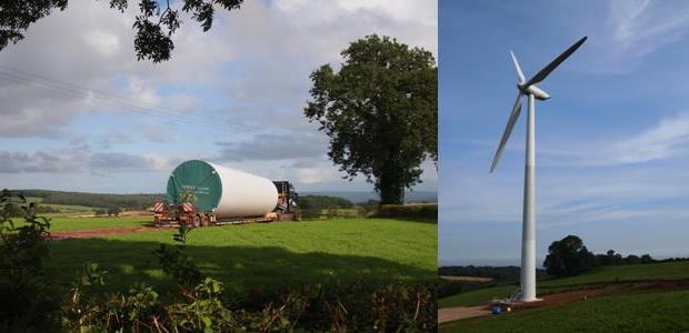 The St Briavels wind turbine in construction (left) and completed (right). Source: Abundance