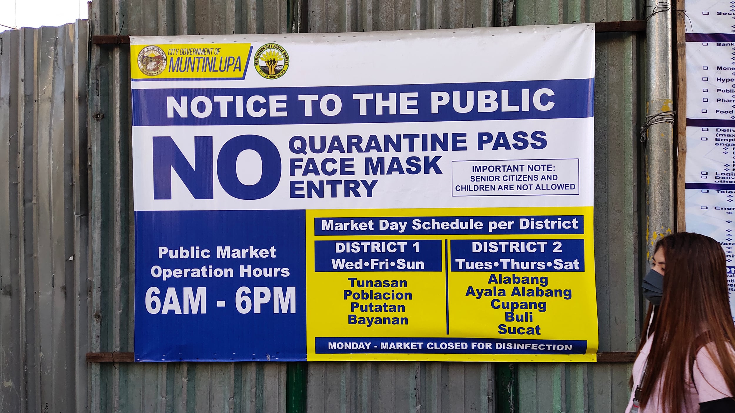 A sign sets out COVID-19 safety protocols introduced by local government in Muntinlupa City, Philippines (Photo: Minette Rimando, ILO via Flickr, CC BY-NC-ND 2.0)