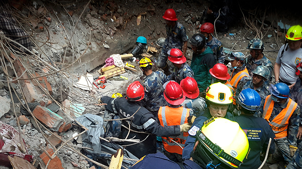 A Disaster Assistance Response Team (DART) team from USaid rescues a teen in the Gongabu, Kathmandu District, five days after the Nepal earthquake in April 2015 (Photo: USaid, Creative Commons, via Flickr)