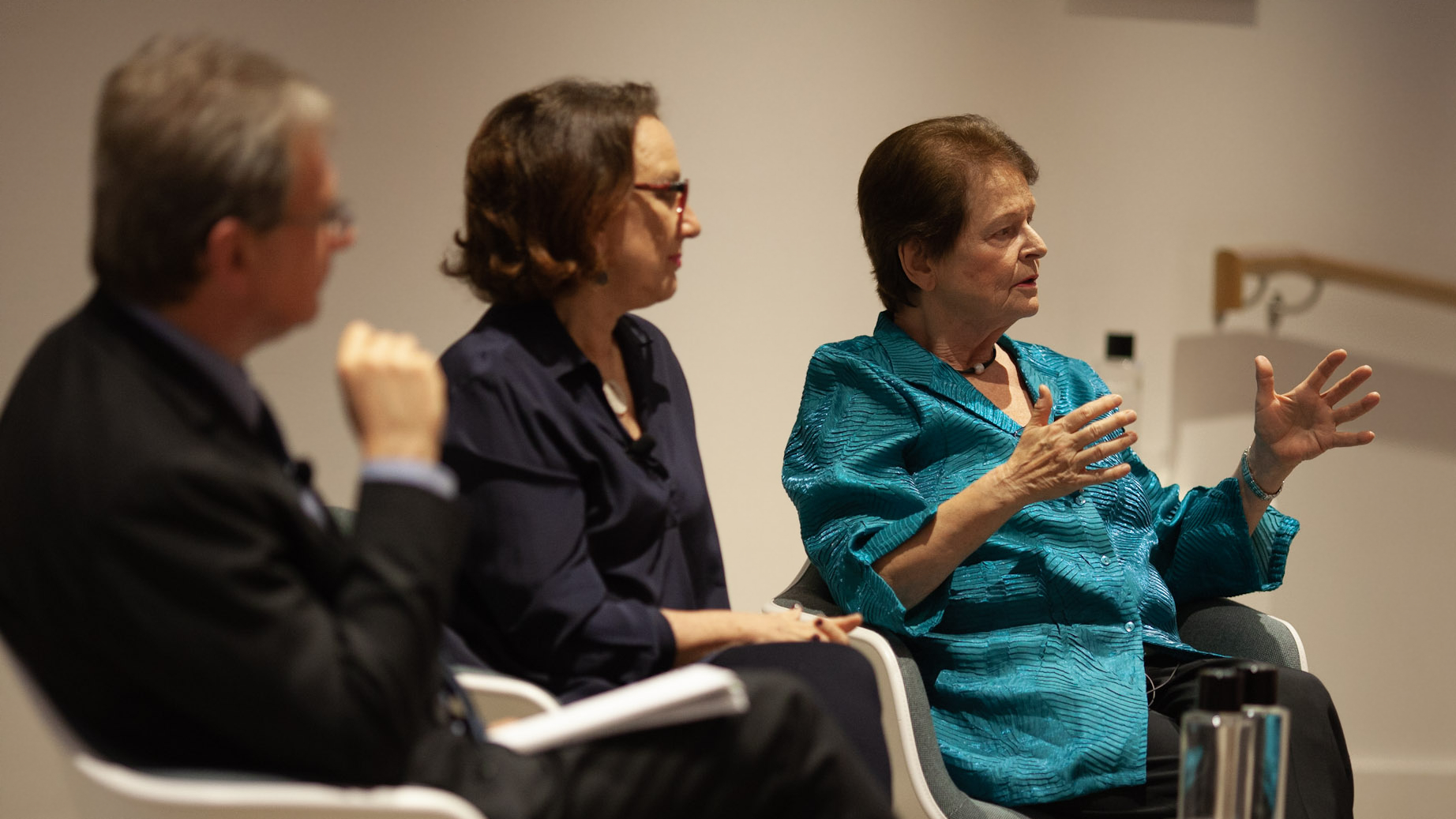IIED's Andrew Norton and chair Rebeca Grynspan with Gro Harlem Brundtland at the 2018 Barbara Ward lecture (Photo: Julius Honnor/Contentious for IIED)