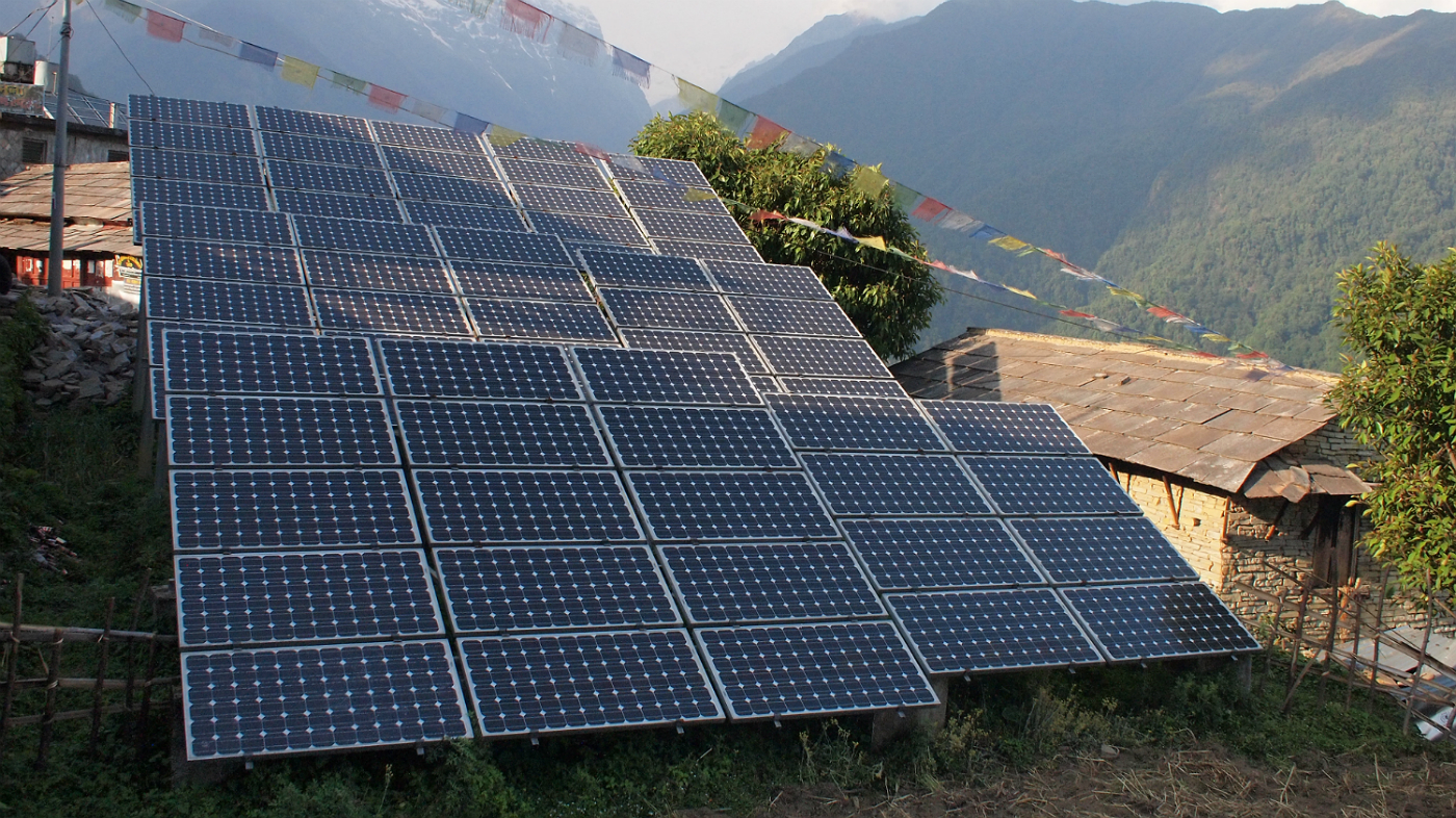 Solar panels in Ghondruk, Nepal (Photo: Rob Goodier/Engineering for Change, CC BY-SA 2.0)