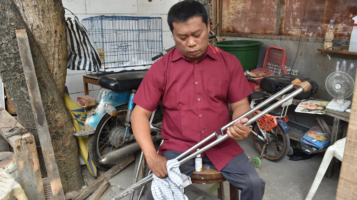 A resident cleaning his crutches before going to work in a densely populated area of Indonesia. “At this time it’s been particularly important to keep my crutches clean. They are an extension of my body,” he explains (Photo: copyright Kota Kita)