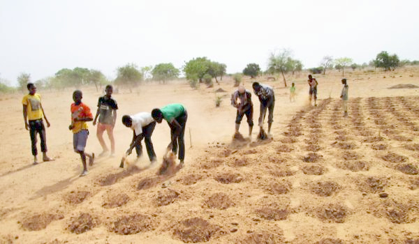 Workers digging zaï pits that help to preserve water on farms (Photo: copyright IUCN)