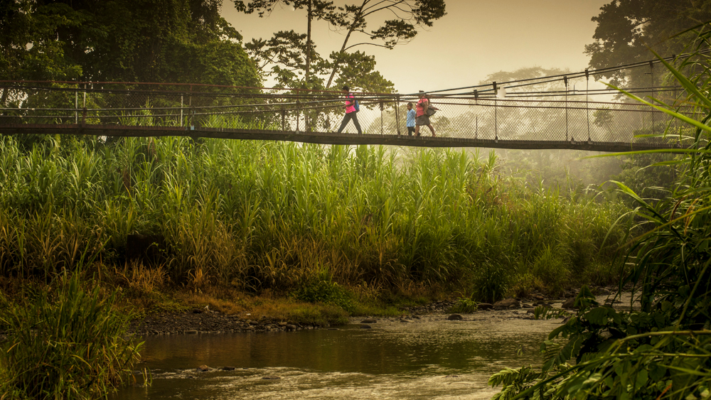 This bridge crossing the Yorkin river in the Sixaola Basin is used daily by local communities, including children on their way to school in the early morning. (Photo: copyright Paul Aragón/IUCN)