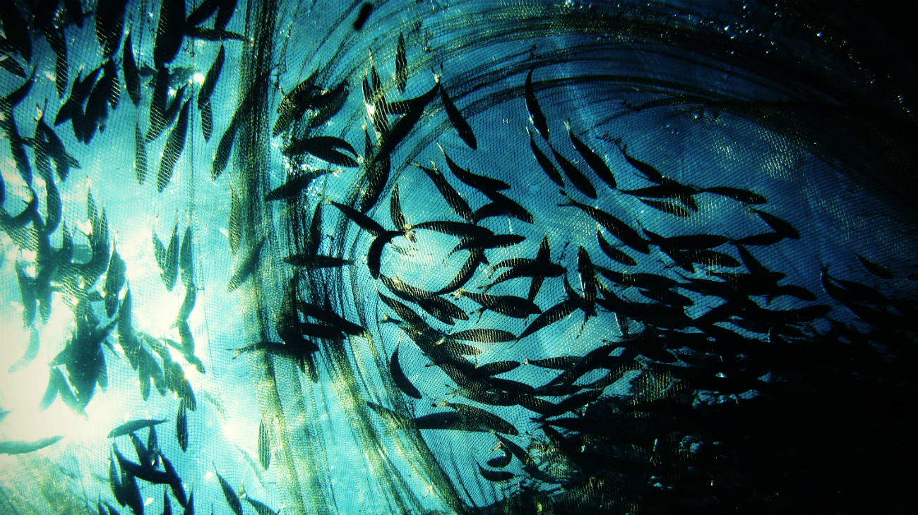A shoal of muguraan circle above a bait net in the Maldives (Photo: Hani Amir, Creative Commons, via Flickr)