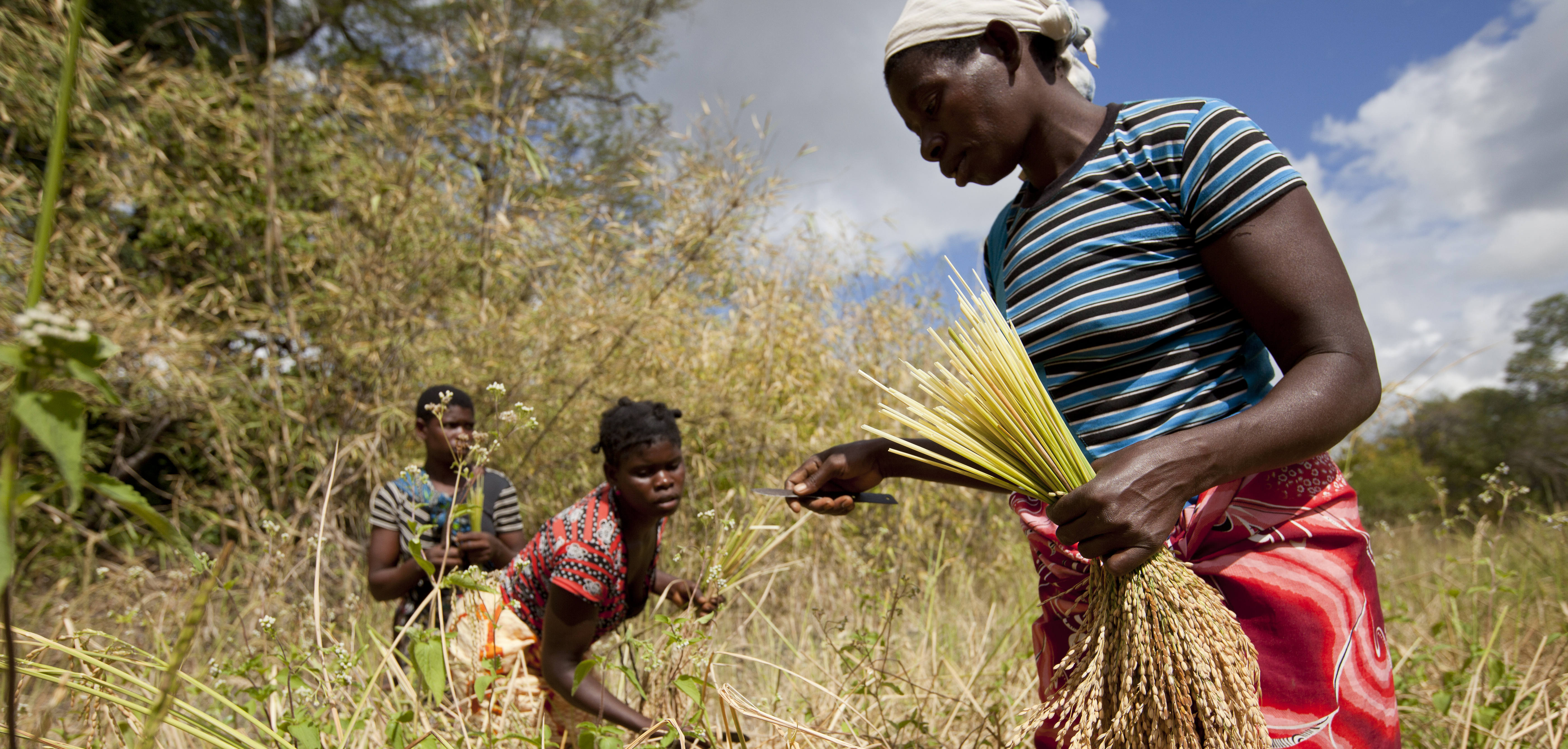 Women harvest their rice crop in Meceburi forest reserve, near Nampula, Mozambique (Photo: copyright Mike Goldwater)