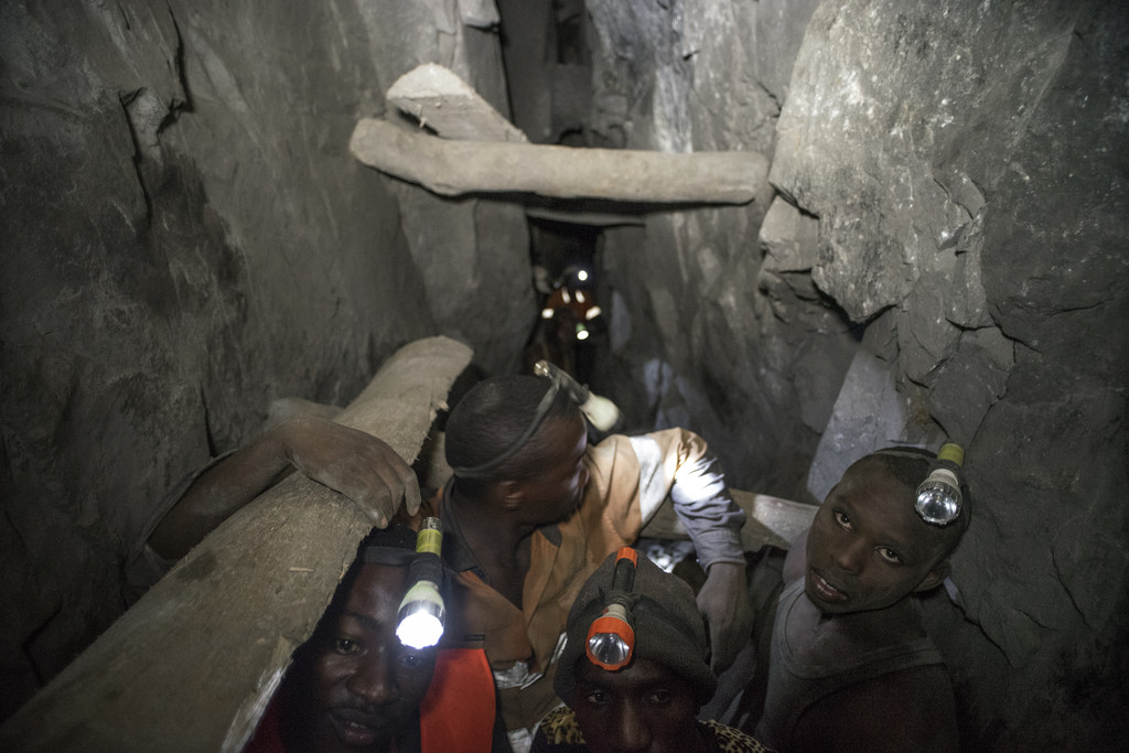 Miners work deep within a tunnel at Nsangano gold mine in the Geita District (Photo: copyright Brian Sokol/Panos Pictures)