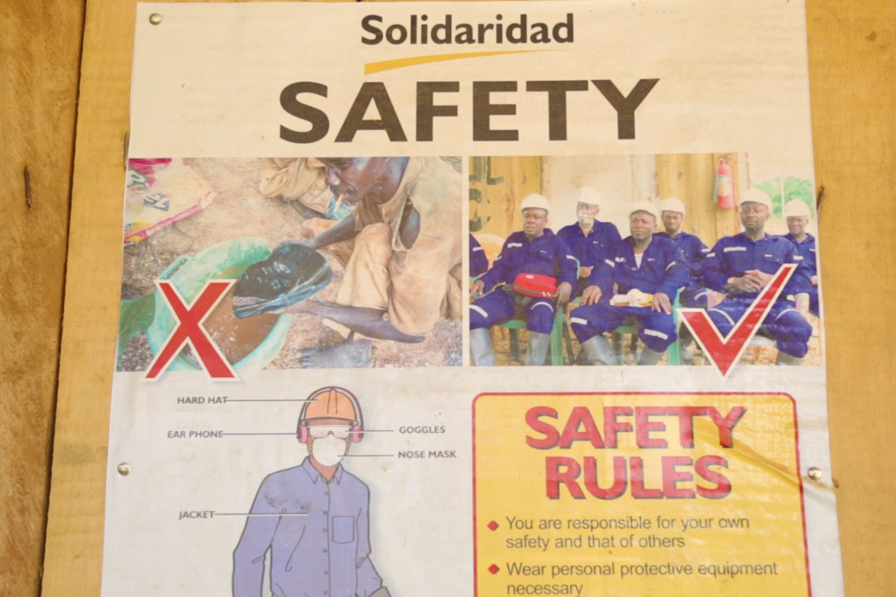 As a security guard, Frederick knows that working in small-scale mining can often be an unsafe and precarious occupation, but he stands firm on his enthusiasm for a different way of running small mines. "There are many who are not doing things right and it's dangerous. They dig a hole, finish their work and leave it like that. But here it's not like that," he says.