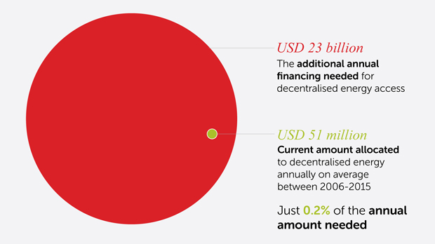 The International Energy Agency (IEA) estimated in 2011 that an additional $23 billion per year is needed for financing decentralised energy. Yet our number crunching found that international public climate finance channels an average of $51 million a year – or just 0.2 per cent of what is needed.