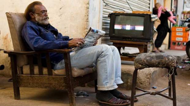 A 'living room on the street' in Paposh Nagar, Karachi (Photo: Fareena Chanda)