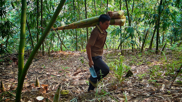 A migrant bamboo farmer harvests bamboo shoots in Tianlin County, Guangxi Zhuang Autonomous Region, China. The UN PAGE conference was told China is reskilling one million workers from forestry into other industries (Photo: Nick Hogarth/CIFOR, CC BY-NC-ND 2.0)
