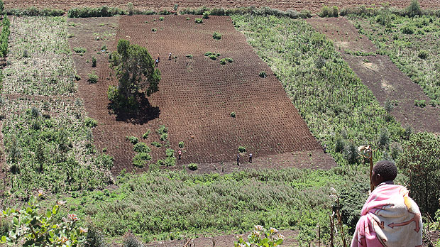 A Maasai farmer watches farmers carry out afforestation (Photo: Matt Wright/IIED)