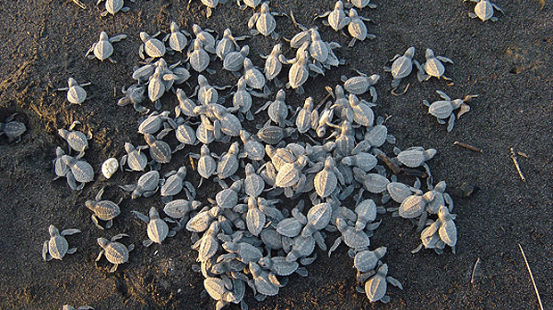 Turtle hatchlings, targeted by the illegal wildlife trade, are pictured on a beach (Photo: Wildlife Rescue and Conservation Association)