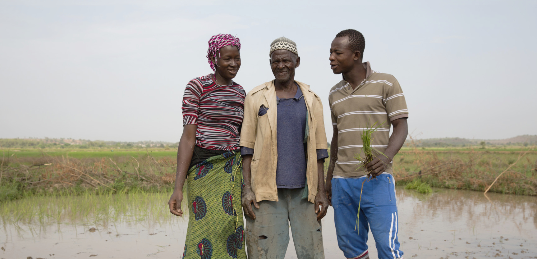 Family farmers growing rice on their plot of land in the irrigated perimeter of Sélingué dam in Mali (Photo: Mike Goldwater/GWI West Africa)