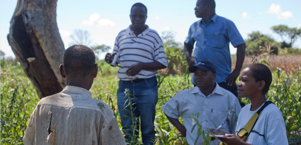 A team designing a REDD strategy talk to farmer Nimale Maribu Saidi as part of their field research in Meceburi Forest Reserve, Mozambique (Photo: copyright Mike Goldwater)