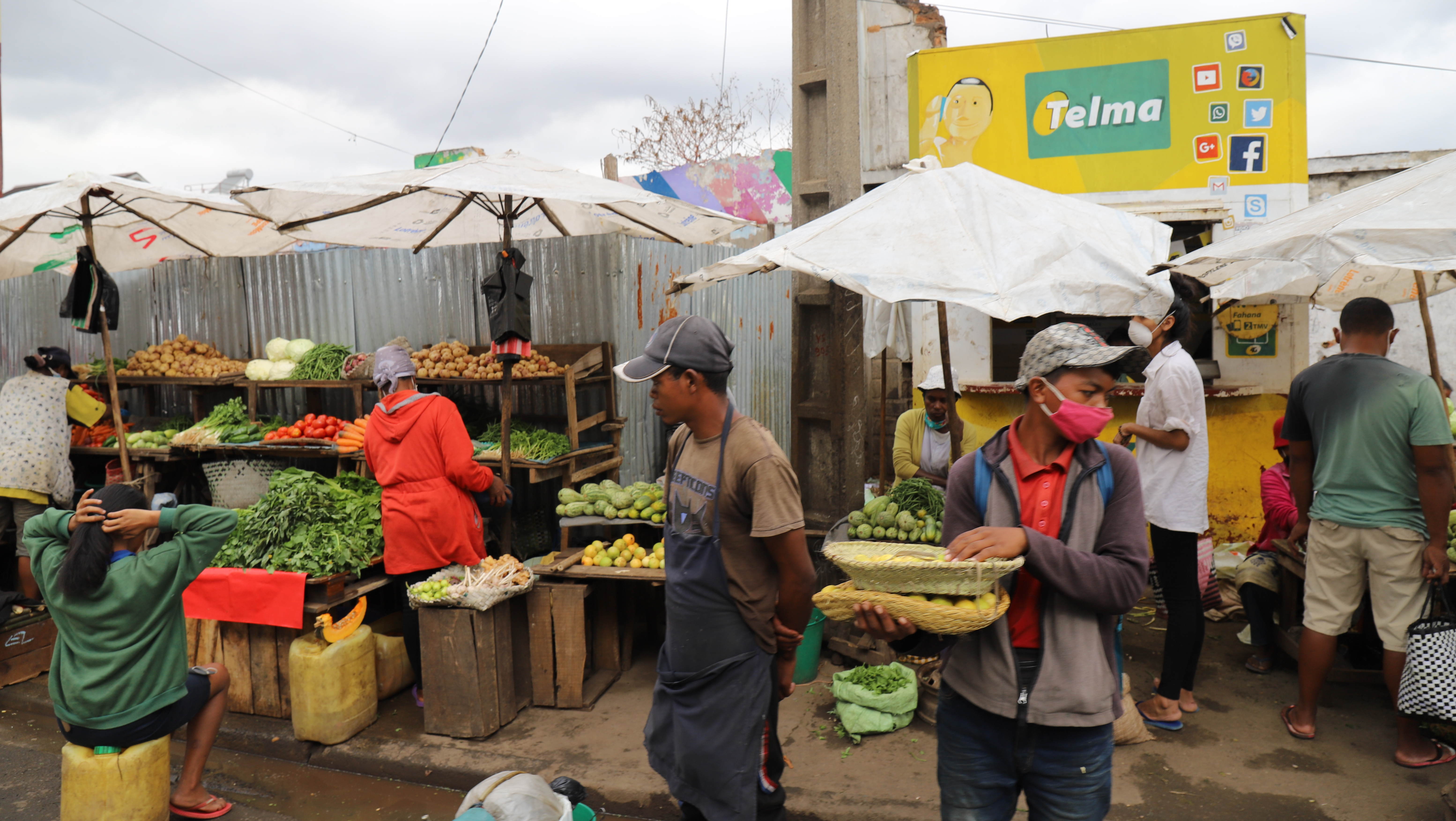Sellers continue work at a vegetable market in Madagascar during the COVID-19 crisis, part of the informal economy in Antananarivo City (Photo: E. Raboanaly/ILO, via Flickr, CC BY-NC-ND 2.0)