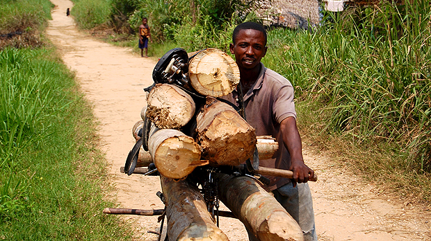 A man transports logs by bicycle. Services provided by informal economies, such as small-scale logging, are often not integrated into plans for green growth (Photo: Jolien Schure/CIFOR, Creative Commons, via Flickr)