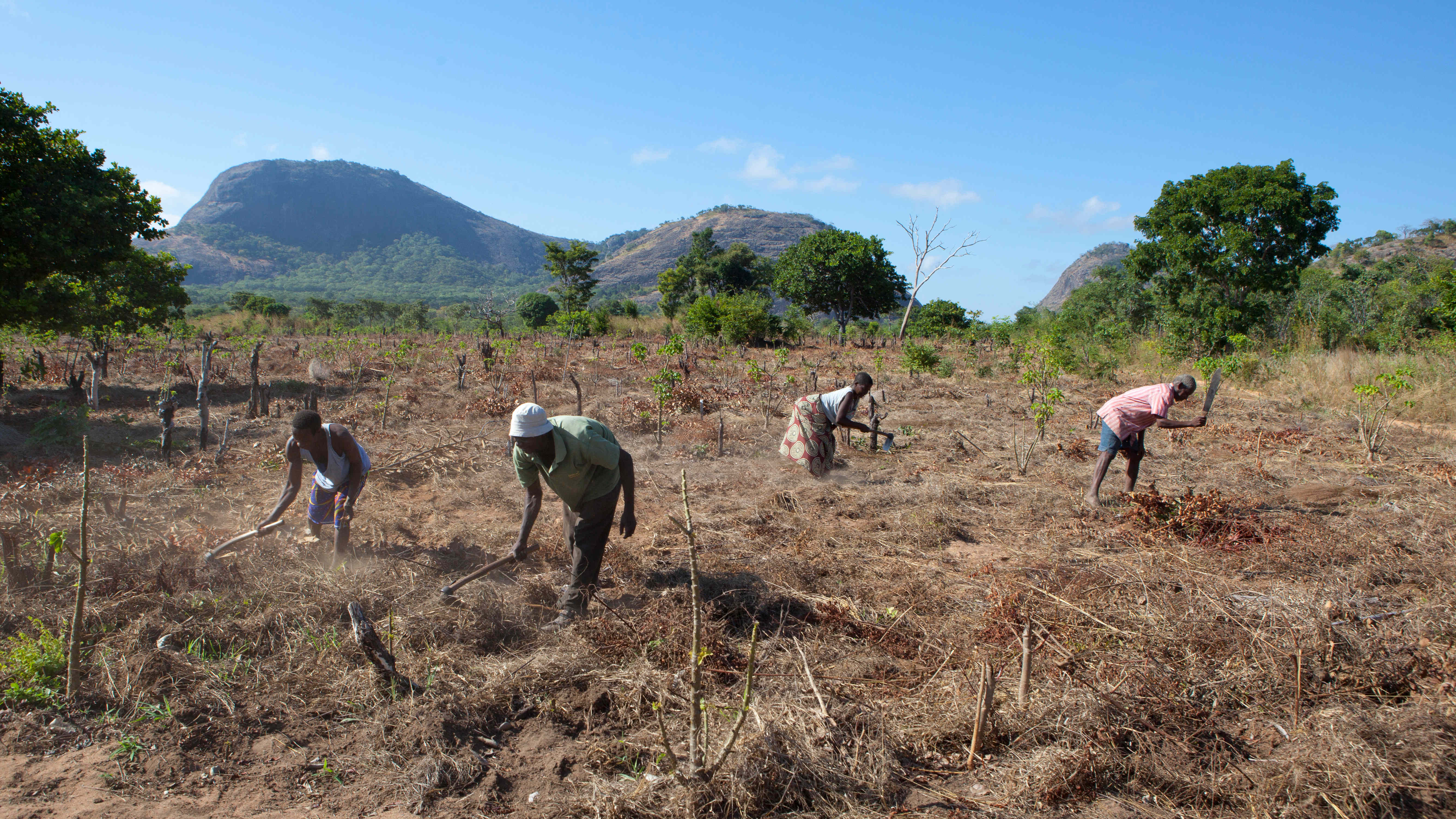 Farm workers in Mozambique working to clear land for planting crops (Photo: Mike Goldwater/IIED)