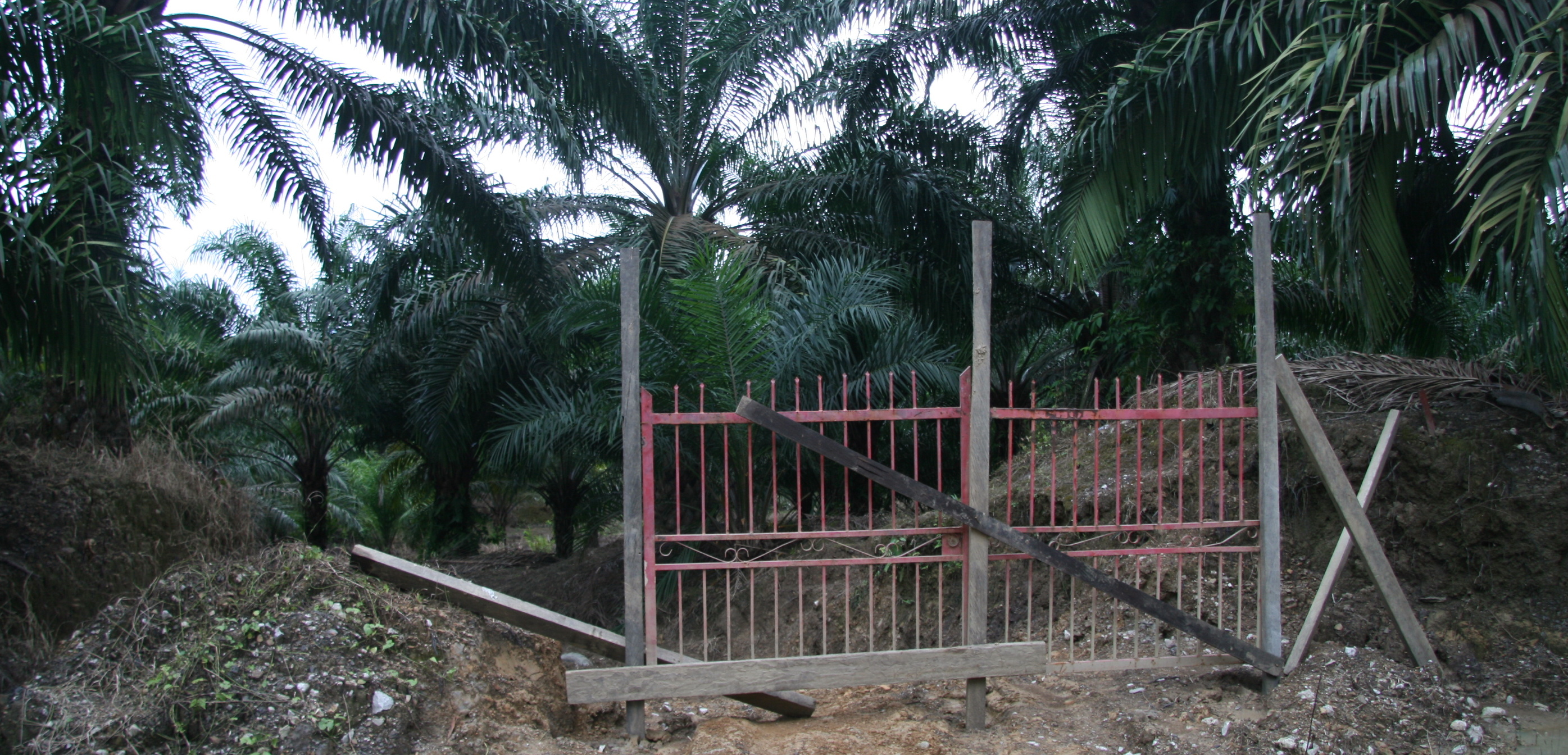 A gate blocks access to the customary lands of the Long Teran Kanan people in Sarawack. Malaysia has seen a huge expansion of oil palm plantations backed by international investors. The customary rights of local people are often ignored (Photo: Wakx, Creative Commons via Flickr)