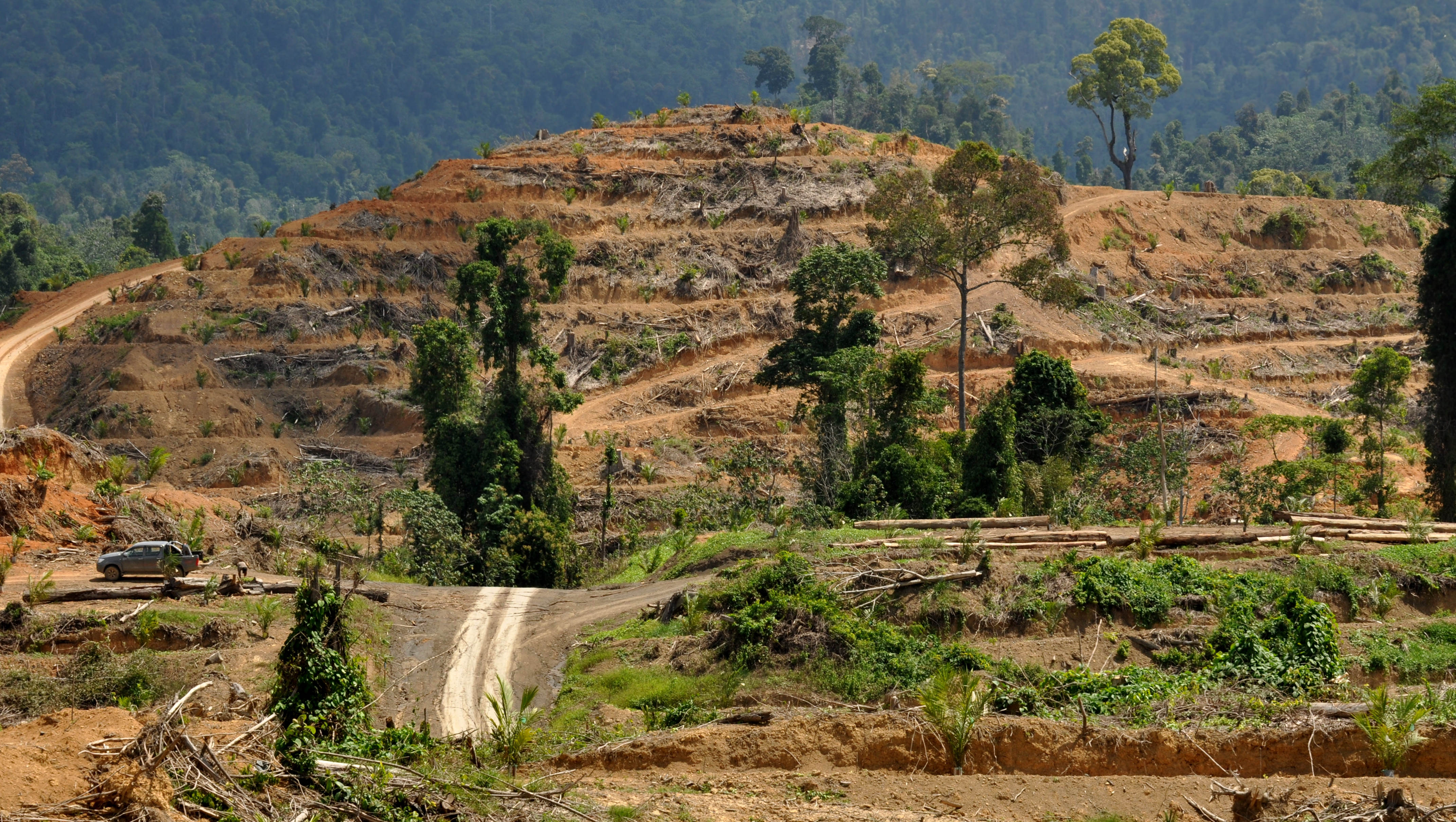 Land cleared for oil palm plantation in Sabah, Borneo. Investments in large-scale oil palm production often overlook ecological and human rights issues (Photo: T.R. Shankar Raman, Creative Commons via Wikipedia)