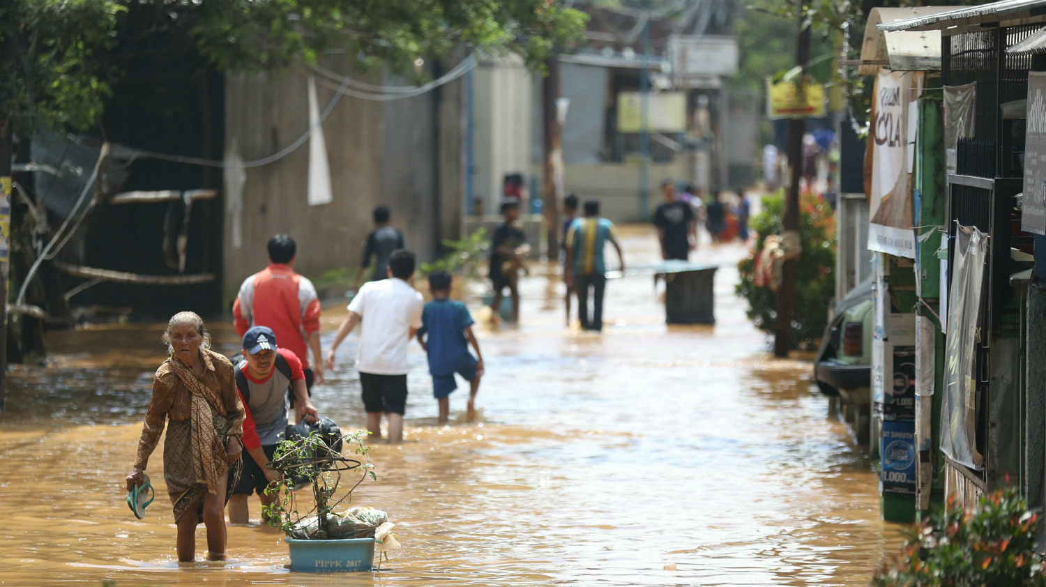 Citizens wade through floods in Bandung City in September 2018 due to the overflow of the Renggong River. In addition to more natural disasters, a warming world will result in huge changes to normal life, and affect the poorest countries worst (Photo: World Meteorological Organisation, Creative Commons, via Flickr)