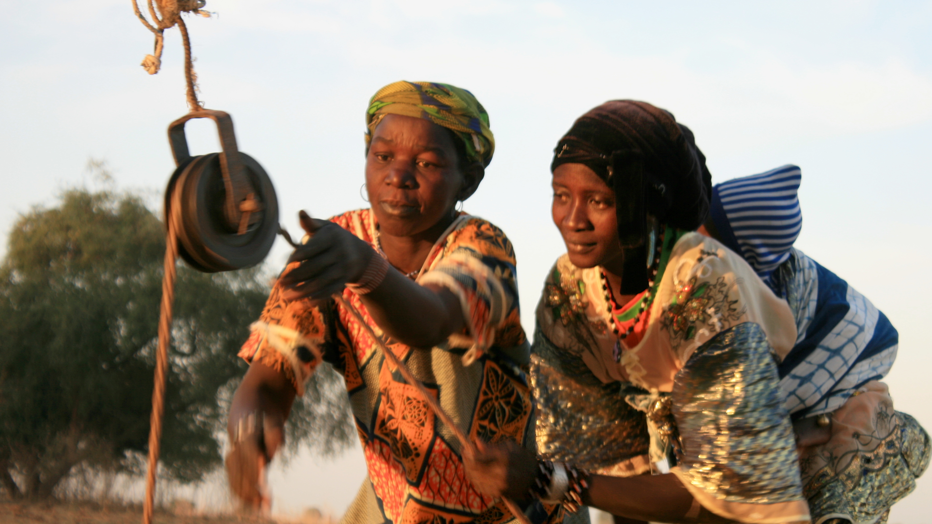 Early morning in Dlonguebougou, Mali, in December 2010 and two young women draw water from a well (Photo: Camilla Toulmin, IIED)