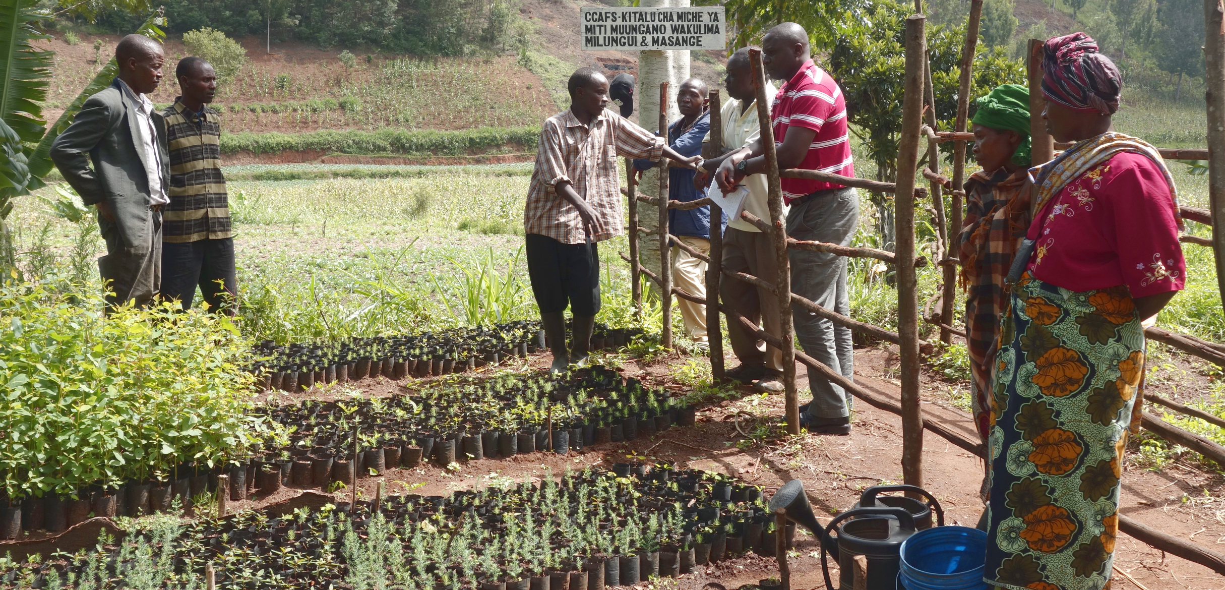 Lushoto, Tanzania: Farmers are being encouraged to diversify into agroforestry. Here a tree nursery group discusses the challenges and opportunities (Photo: P Kimeli/CCAFS)