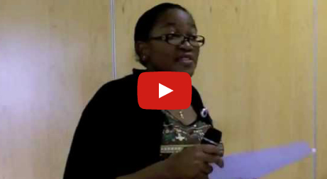In the style of the TV programme 'Dragons' Den', Dineo Gaborekwe from the Ministry of Environment, Wildlife and Tourism of Botswana, pitches the biodiversity business case for Botswana with the 'investors' looking on.