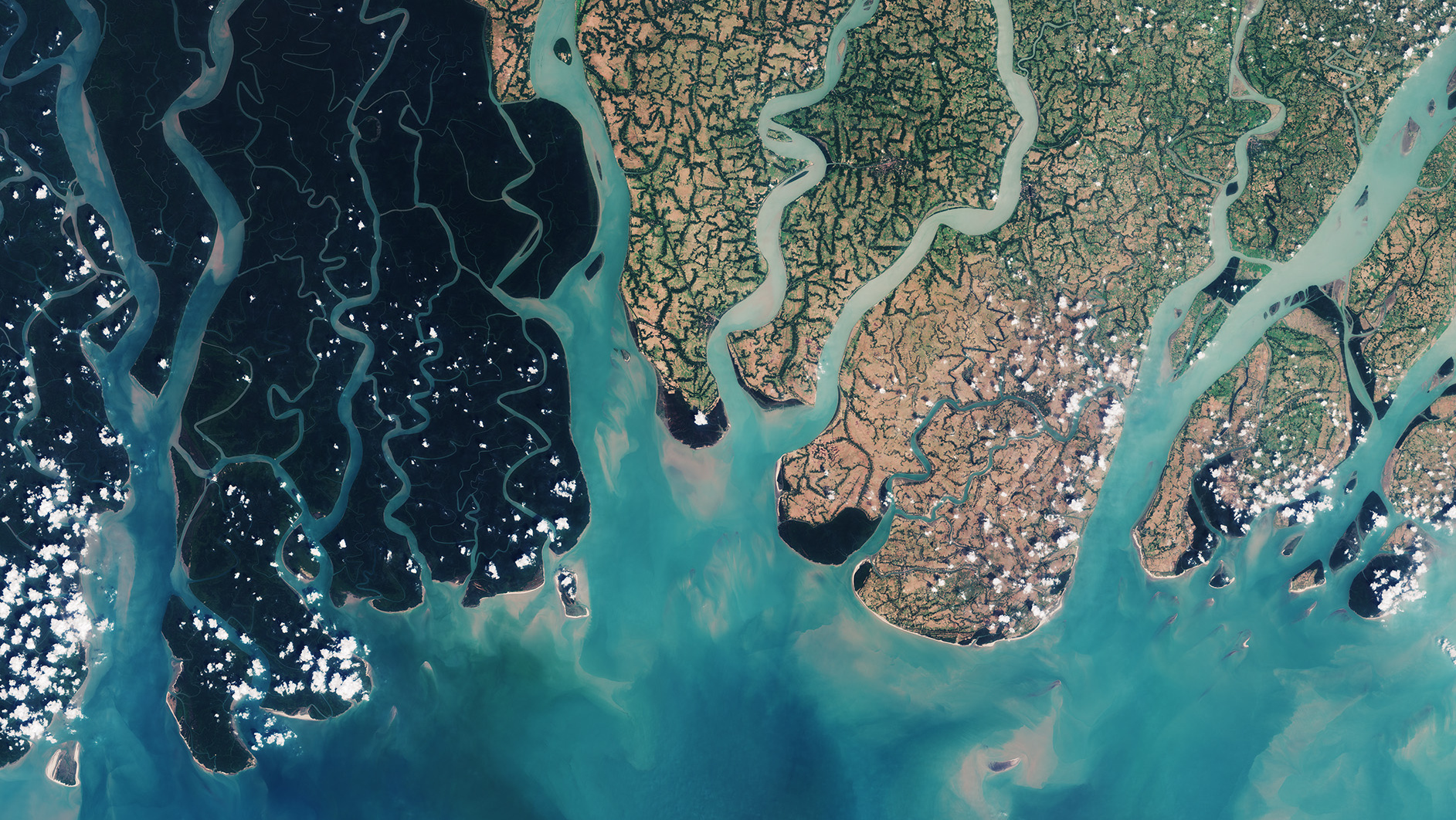 The Sundarbans mangrove forest (dark green on the image) is a fragile ecosystem threatened by rising levels of salinity (Photo: European Space Agency, CC BY-NC-SA 2.0)