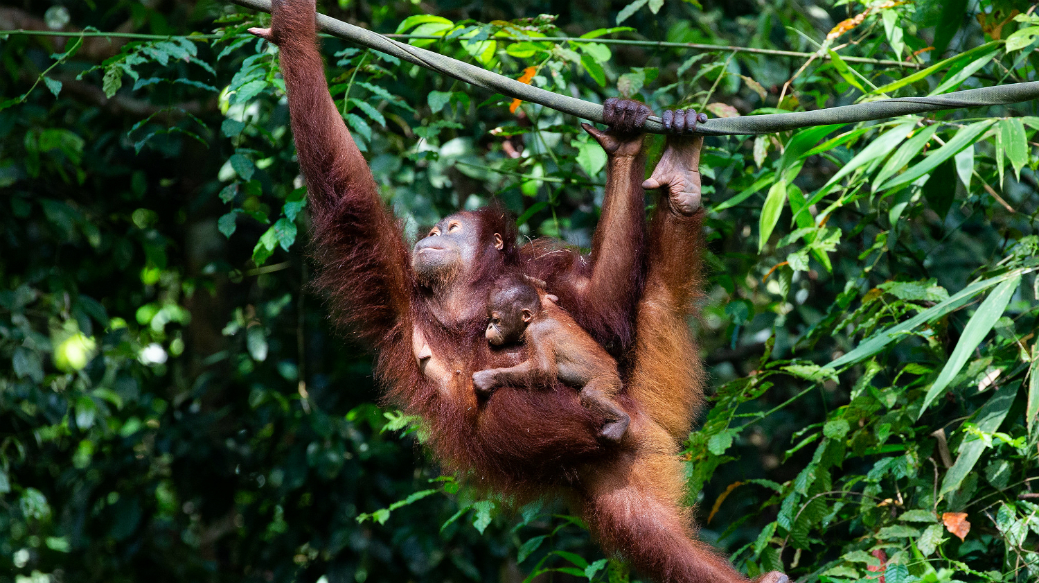 A baby orangutan clings to its mother. IIED's biocredits system learned from the Malua BioBank, which sought to generate commercial incentives for biodiversity conservation to compete against alternative land uses, and supported wild orangutans in Malaysia (Photo: Sascha Wenninger, via Flickr, CC BY-SA 2.0)