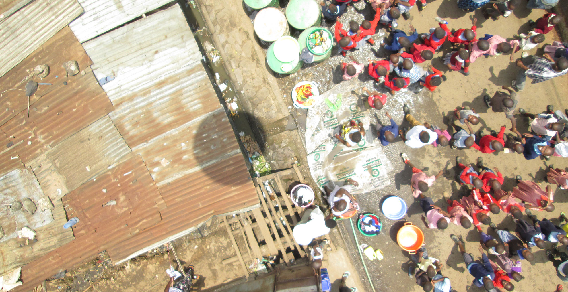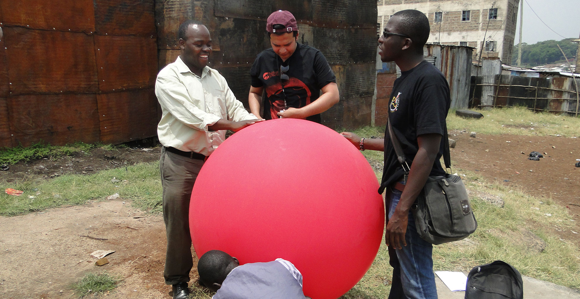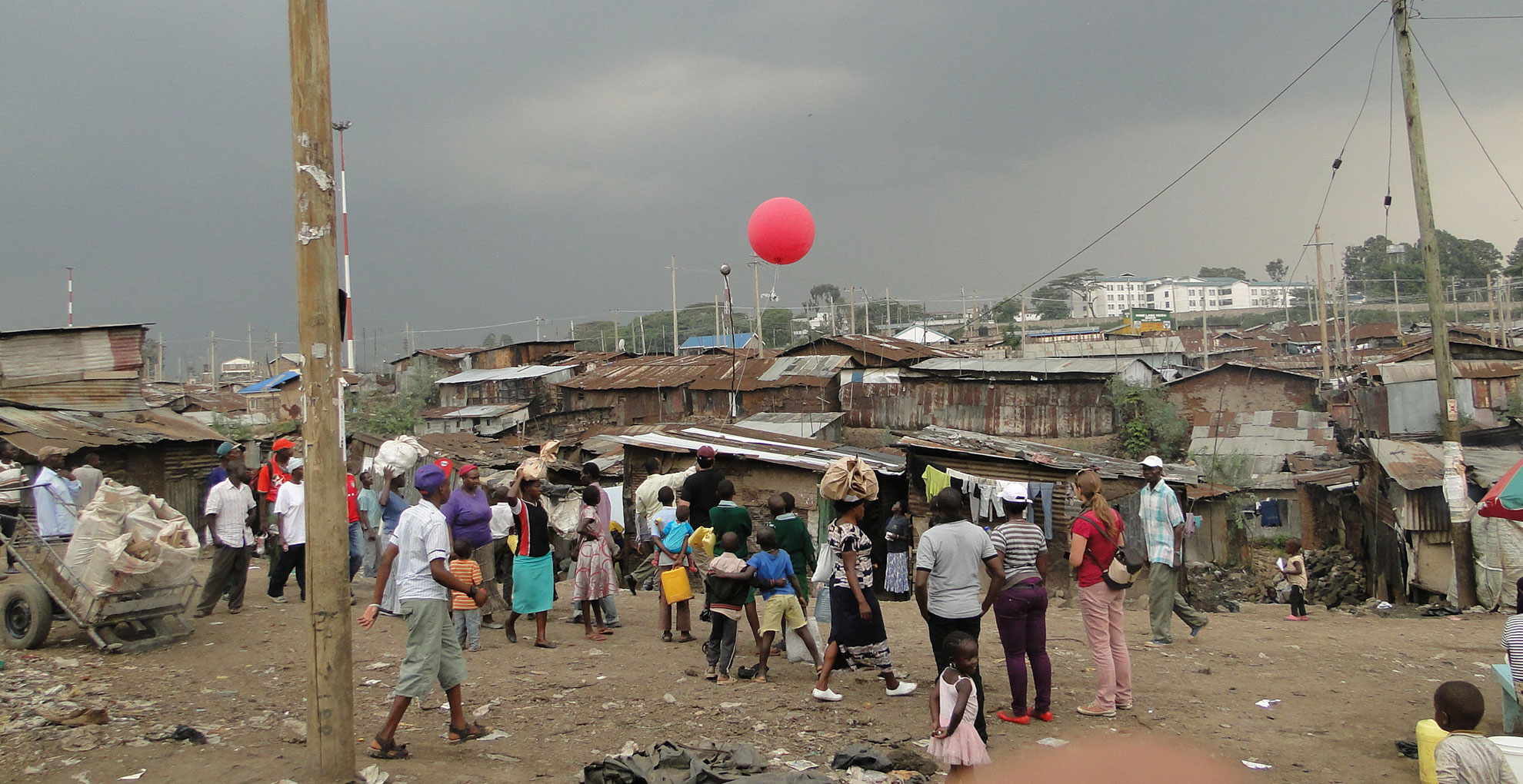 A red balloon more than a metre in diameter rises above tin roofs in Mathare, one of Nairobi’s biggest informal settlements. As the balloon’s handler walks through the narrow alleyways, a camera dangling from the balloon snaps a photo every second. This eye in the sky is helping the community identify and deal with threats to their daily food supplies.