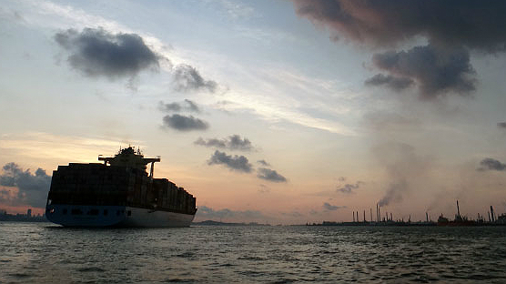 A container ship off Pulau Bukom, Singapore. A case study in the Caribbean showed that reducing marine pollution will yield the most co-benefits across SDG targets (Photo: Ria Tan, Creative Commons, via Flickr)