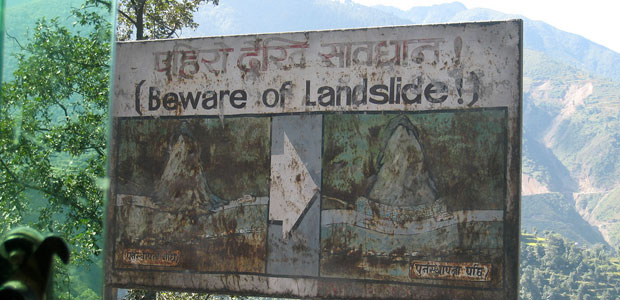 A sign near Kathmandu, Nepal, warns of the dangers of landslides (Photo: Doug Letterman, CC BY 2.0)