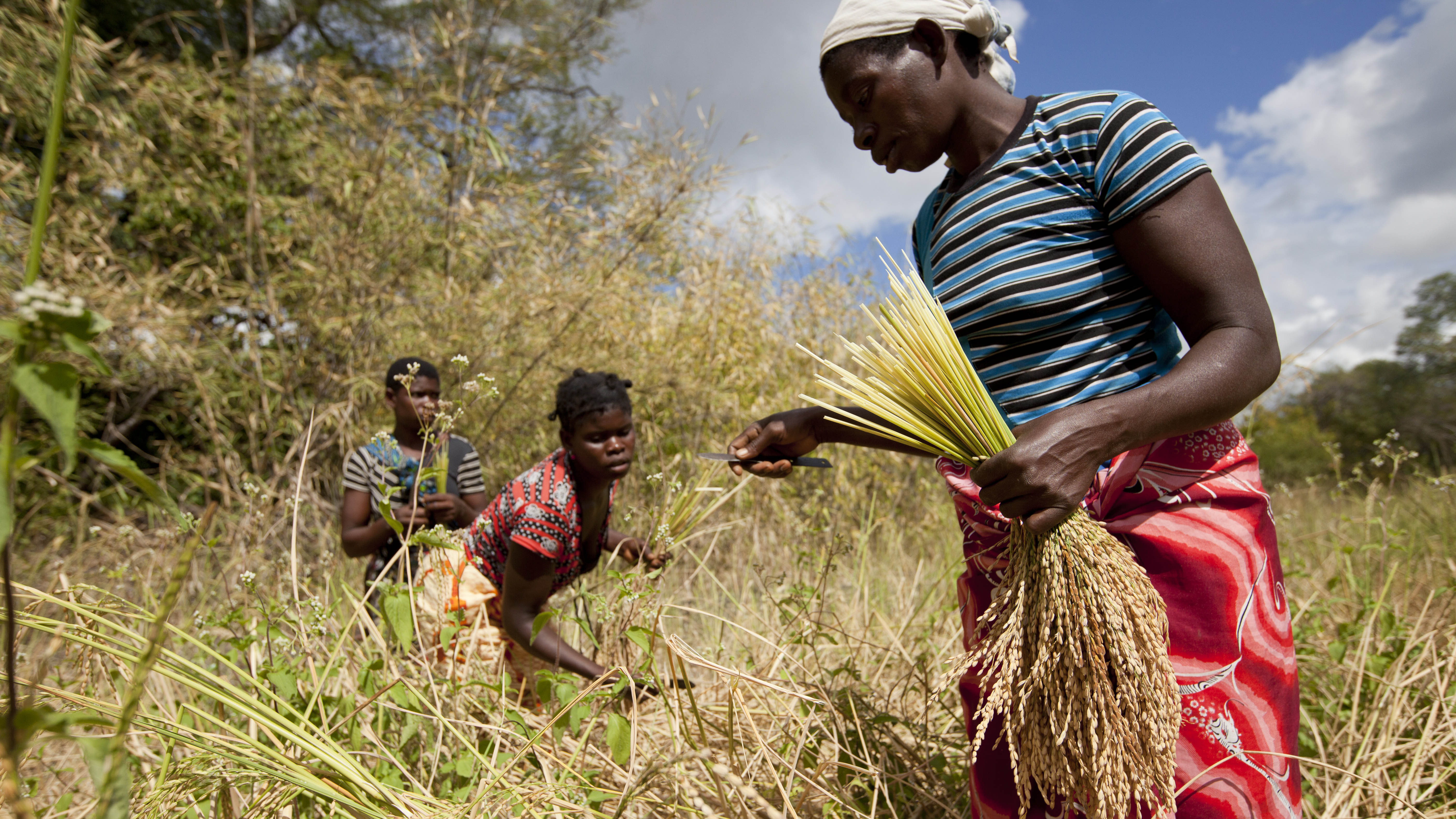 Women harvest their rice crop in Meceburi forest reserve near Nampula, Mozambique (Photo: copyright Mike Goldwater)