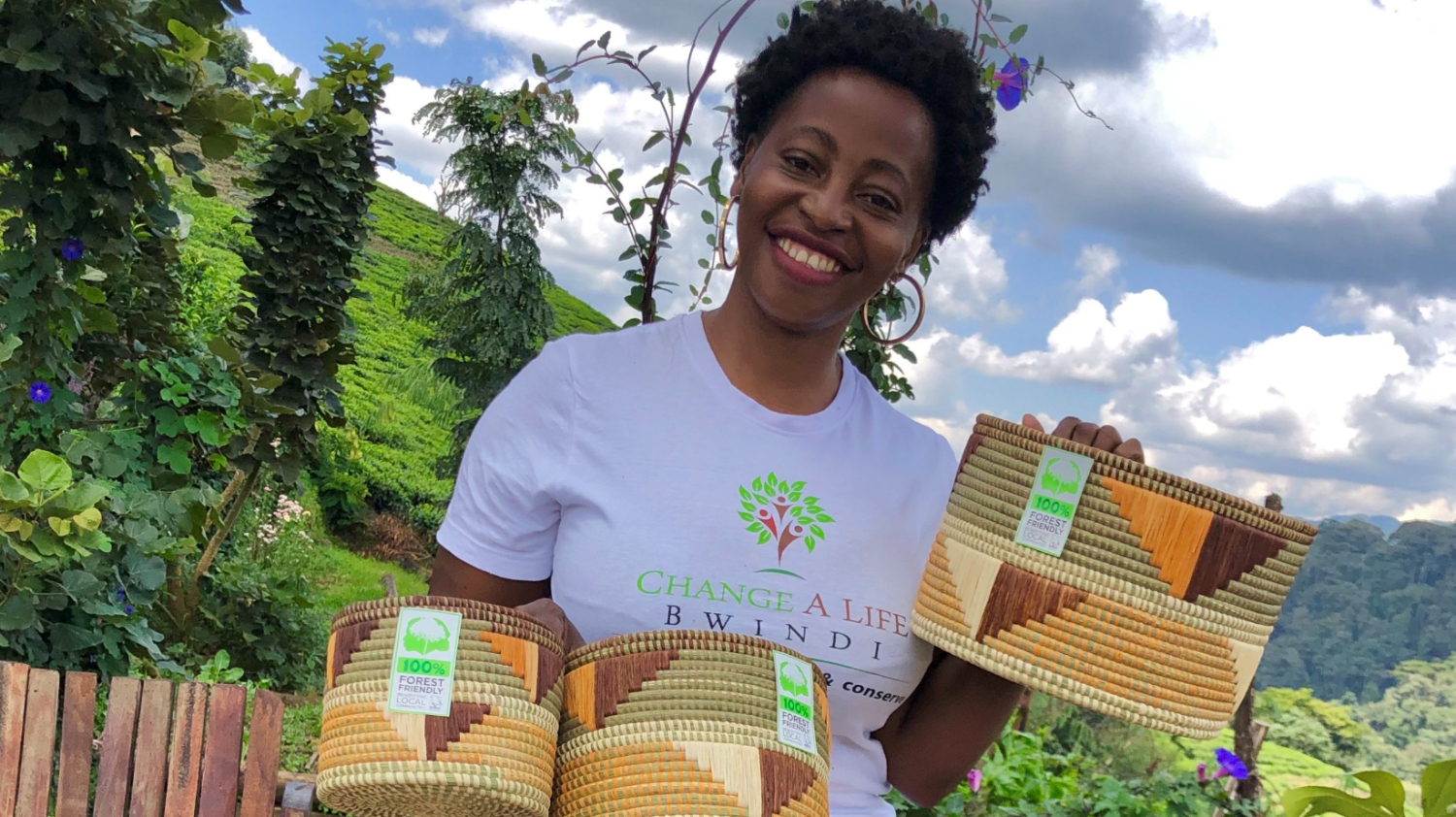 Tina Katushabe, from Change a Life Bwindi, is helping women in Uganda to improve their livelihoods by weaving baskets (Photo: copyright Change a Life Bwindi)