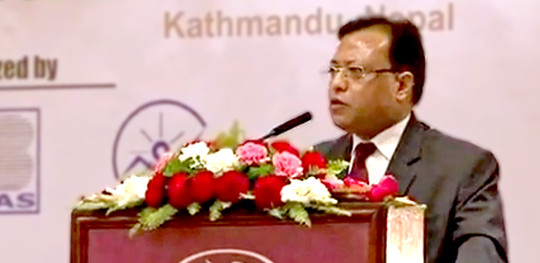 Prakash Mathema speaking at the opening ceremony of the 8th annual conference on community-based adaptation to climate change (CBA8) held in Kathmandu, Nepal in April 2014 (Photo: IIED)