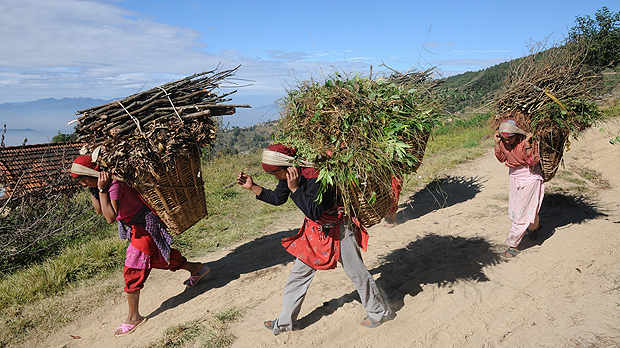 Nepalese women carry wood harvested sustainably from a forest. Forests cover nearly half of Nepal (Photo: Bikas Rauniar/Department for International Development, Creative Commons, via Flickr)