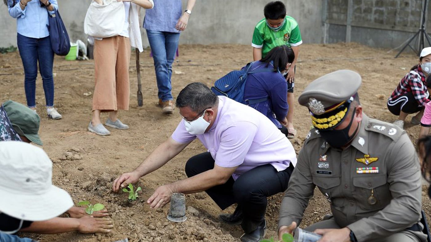Community members from the nearby Mae Kha Canal settlements plant vegetables and fruit trees and other auspicious trees (Photo: copyright Chiang Mai Urban Farm)