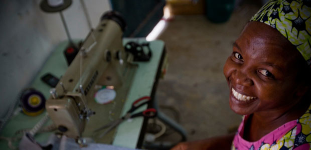 A woman makes clothes for SOKO, a Kenyan textiles supplier that combines fashion manufacturing with improving local livelihoods. Photo: Joanna Maiden, SOKO