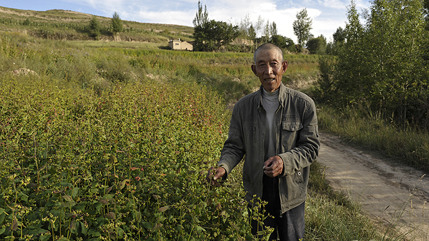 A farmer in a buckwheat field close to harvest time in Gansu Province, China. The country's agriculture is currently facing major environmental challenges (Photo: Copyright Han Jianping)