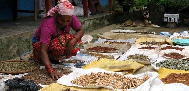 Drying medicinal plants, the knowledge of which is passed down through generations. In South Asia alone, there are more than 8,000 plant species with known medicinal value (Photo: copyright Bioversity International/B. Sthapit)