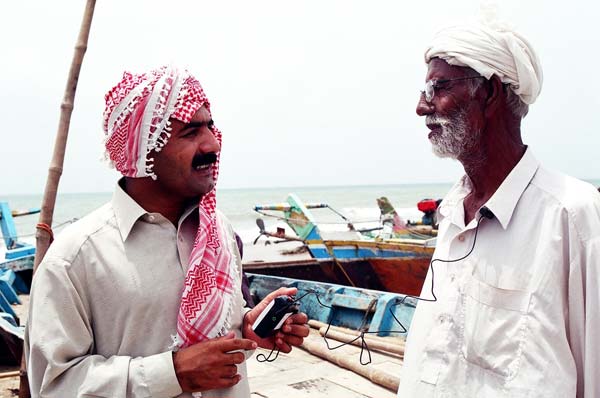 Men practice an oral testimony interview during workshops in Karachi, Pakistan (see Article 4 of PLA 63) Photo credit: Panos, London