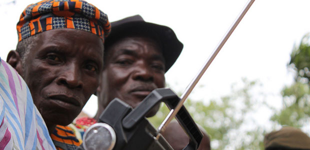 Men listen to a radio in the Ivory Coast. Many NGOs bring about change and influence behaviour through targeted multi-media communications campaigns, which include radio.