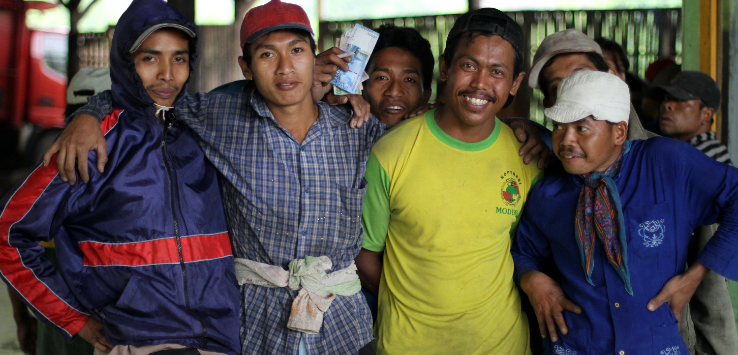 A group of miners who are working the Kawa Ijen volcano in Java, Indonesia. The miners carry sulfur down the volcano and to the processing centre where the sulfur is weighed and the miner is paid (Photo: Adam Cohn, Creative Commons, via Flickr)